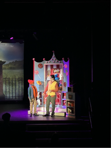 Vibrant, colourful set design and painting, blending traditionally constructed sets with modern scene projection